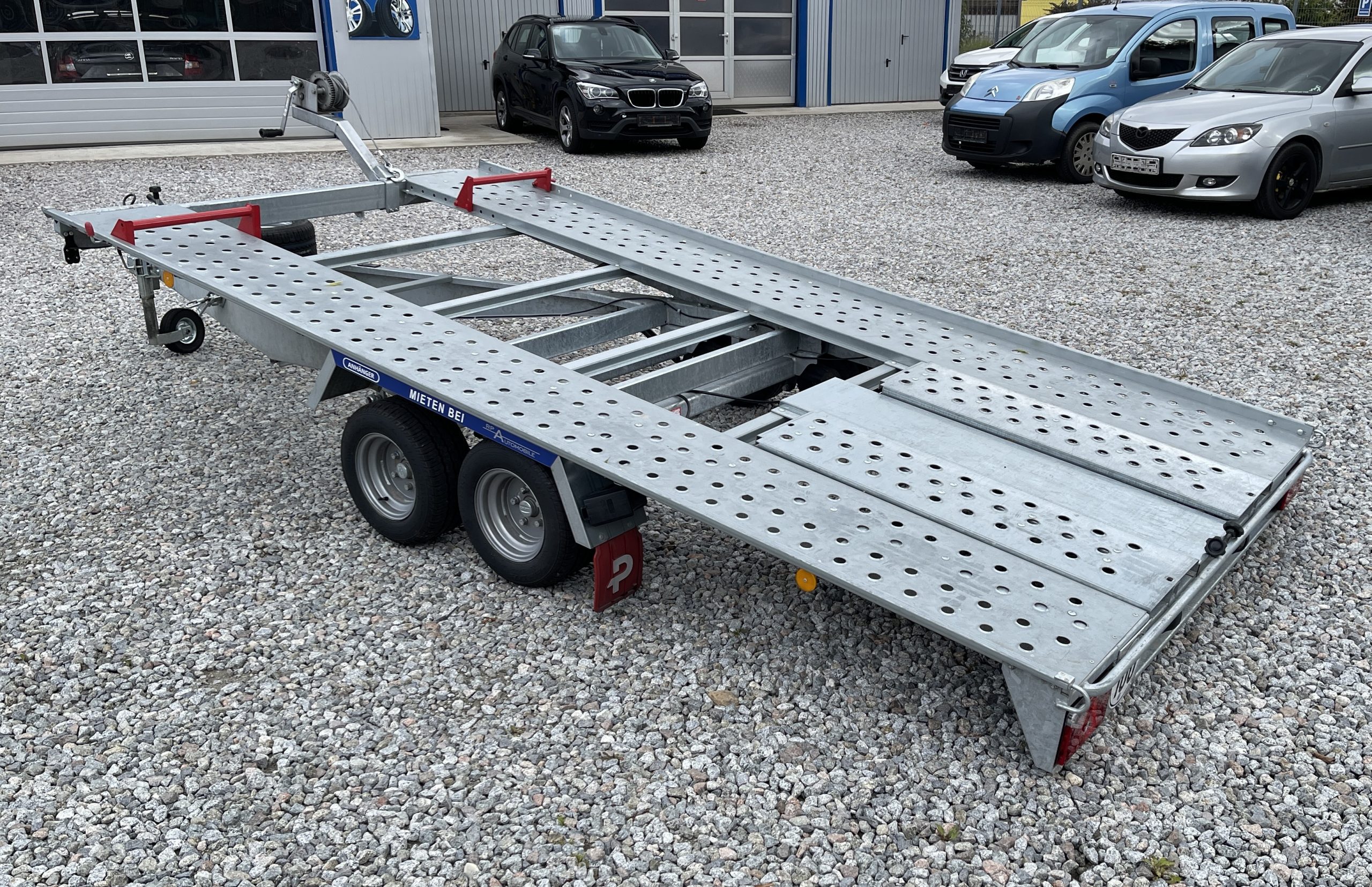 Zum einfachen Transport von KFZ (auch für Tiefgelegte Fahrzeuge). Der Autotransportanhänger ist Kippbar und mit Seilzug und Auffahrschienen. Dadurch ist das Be-/Entladen und sichern kein Problem.